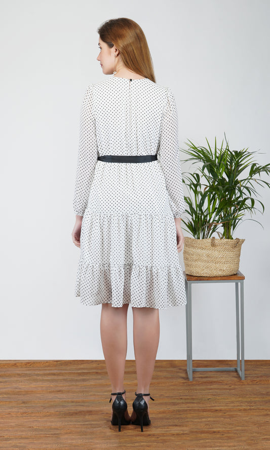 Design: Black Polka Dot Midi Dress with Modern Detailing