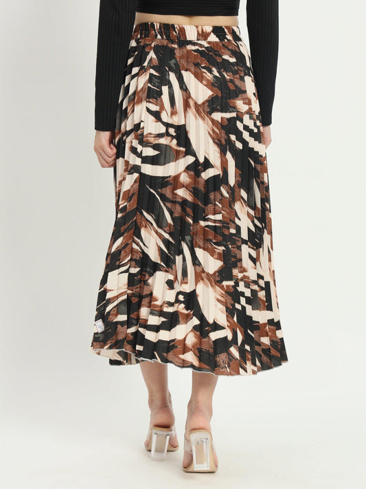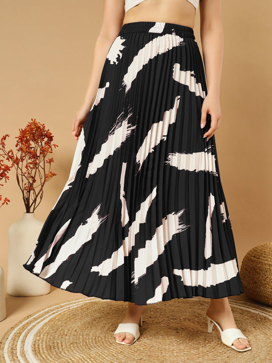 Vintage-inspired Pleated Midi Skirts with Brushstroke Print and Elastic Waistband