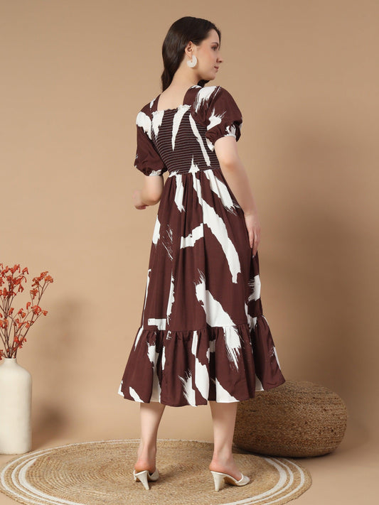 Cream & Brown Tribal Print Rayon Co-ord Set